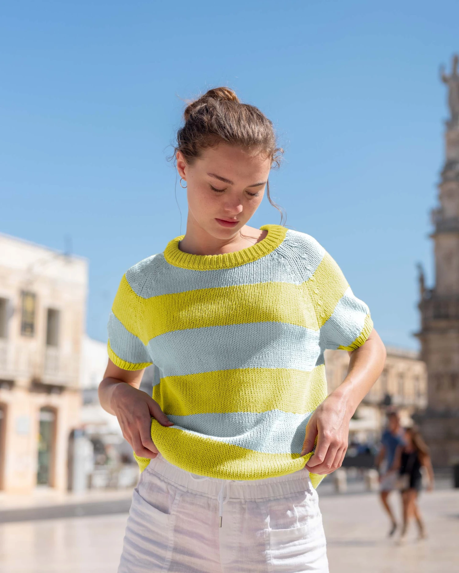 The beloved Amalfi Sweater just got a Cap Sleeve sister. This playful twist on our classic crewneck offers a cooler design and touch of sophistication for your summer-wear. Pair this plush pullover with shorts, jeans, pants, or a swimsuit—regardless, you’ll stand out all afternoon.