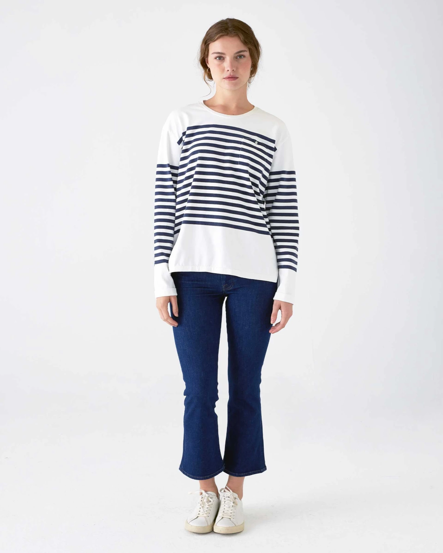 If our Boater Long Sleeve Shirt looks familiar, it’s because this iconic sailor-style is timeless. We were inspired by all things nautical when we designed this shirt. The heavy jersey knit fabric with small side slits and a crew neckline makes the ease of wear a bragging point, one that even true sailors could set sail in. This fall, expect compliments on the details like a small chest pocket and placed stripes on your long sleeve.