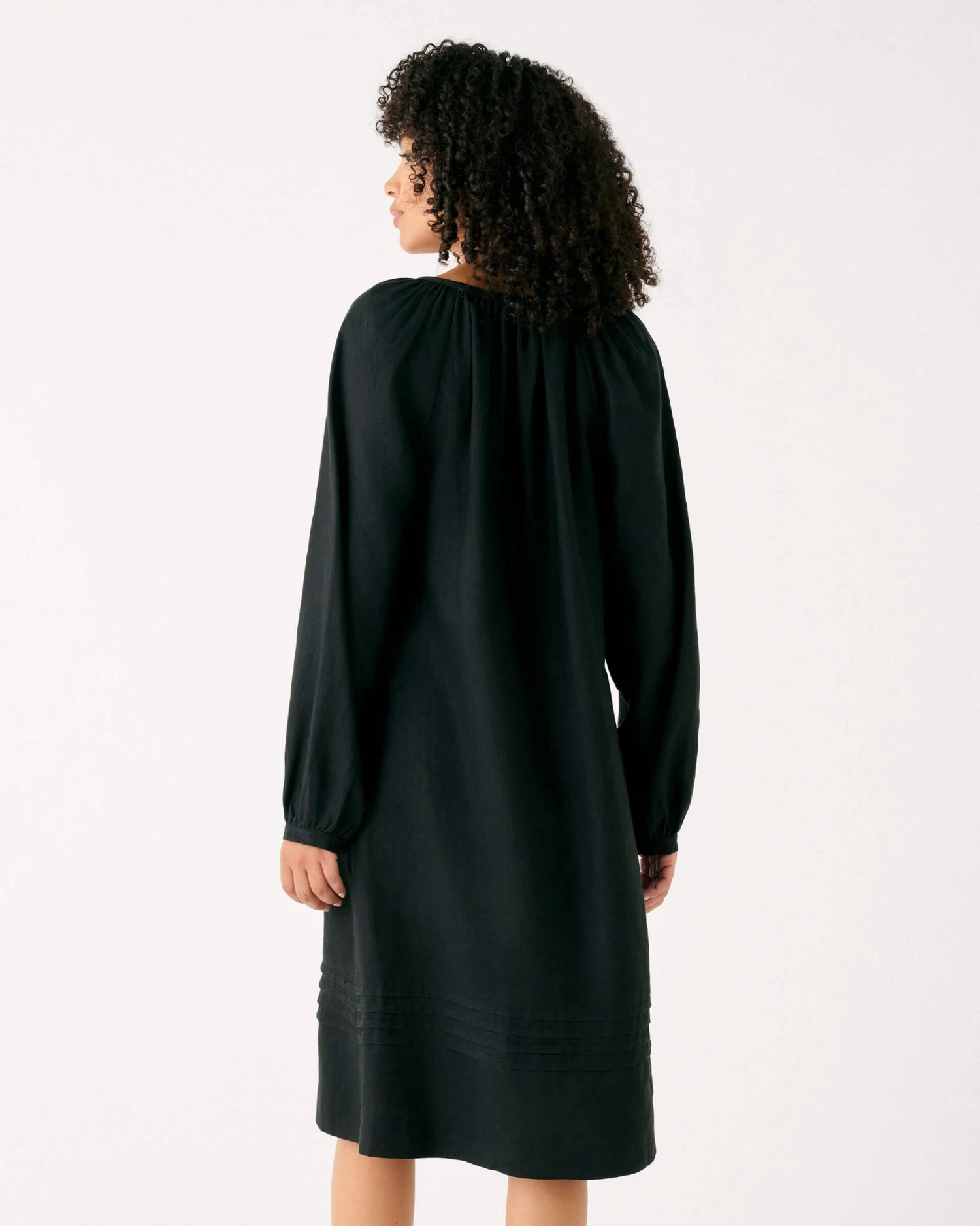 Our Fête Linen Dress is the quintessential “everything” dress. Part of our Voyageur Collection and made of soft linen, its relaxed fit and A-line silhouette make it perfect for anywhere: that little dinner around the pool, that beachside aperitif, or that shopping trip with friends. Featuring a split v-neckline with tassel ties, full-length sleeves with summarying closure, and pintucks at the sleeves and hem. This classic linen dress can be dressed up or down – it’s all up to you. Simplicity never looked so celebratory.