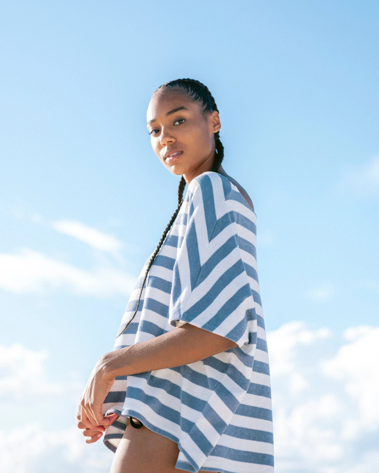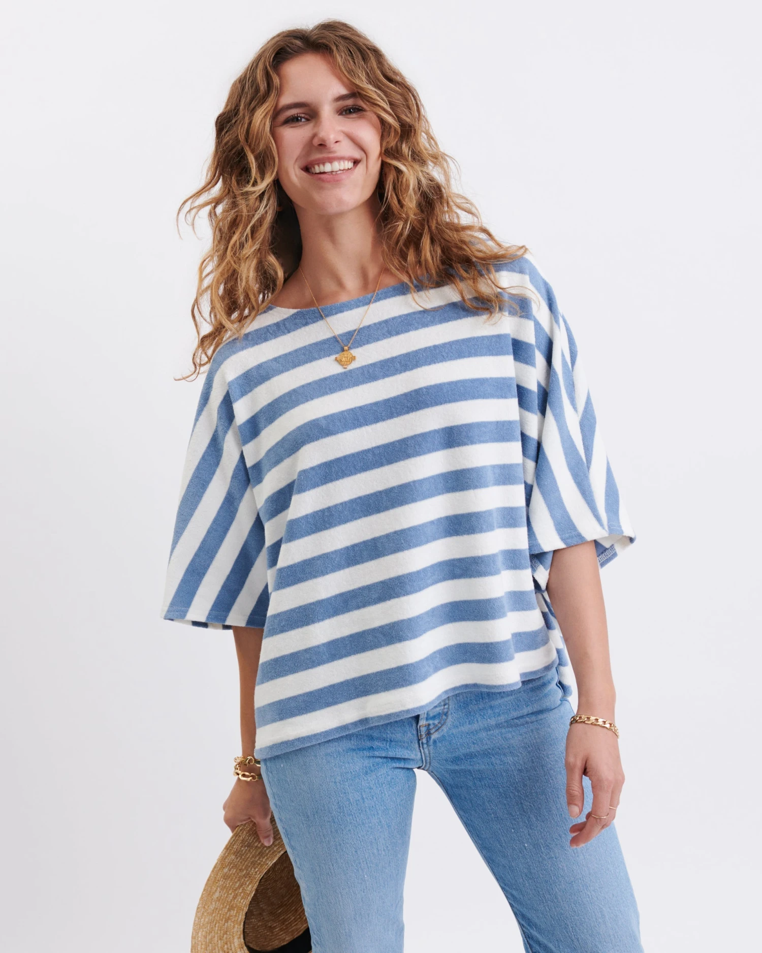 – Refined open neckline with a loose fit throughout