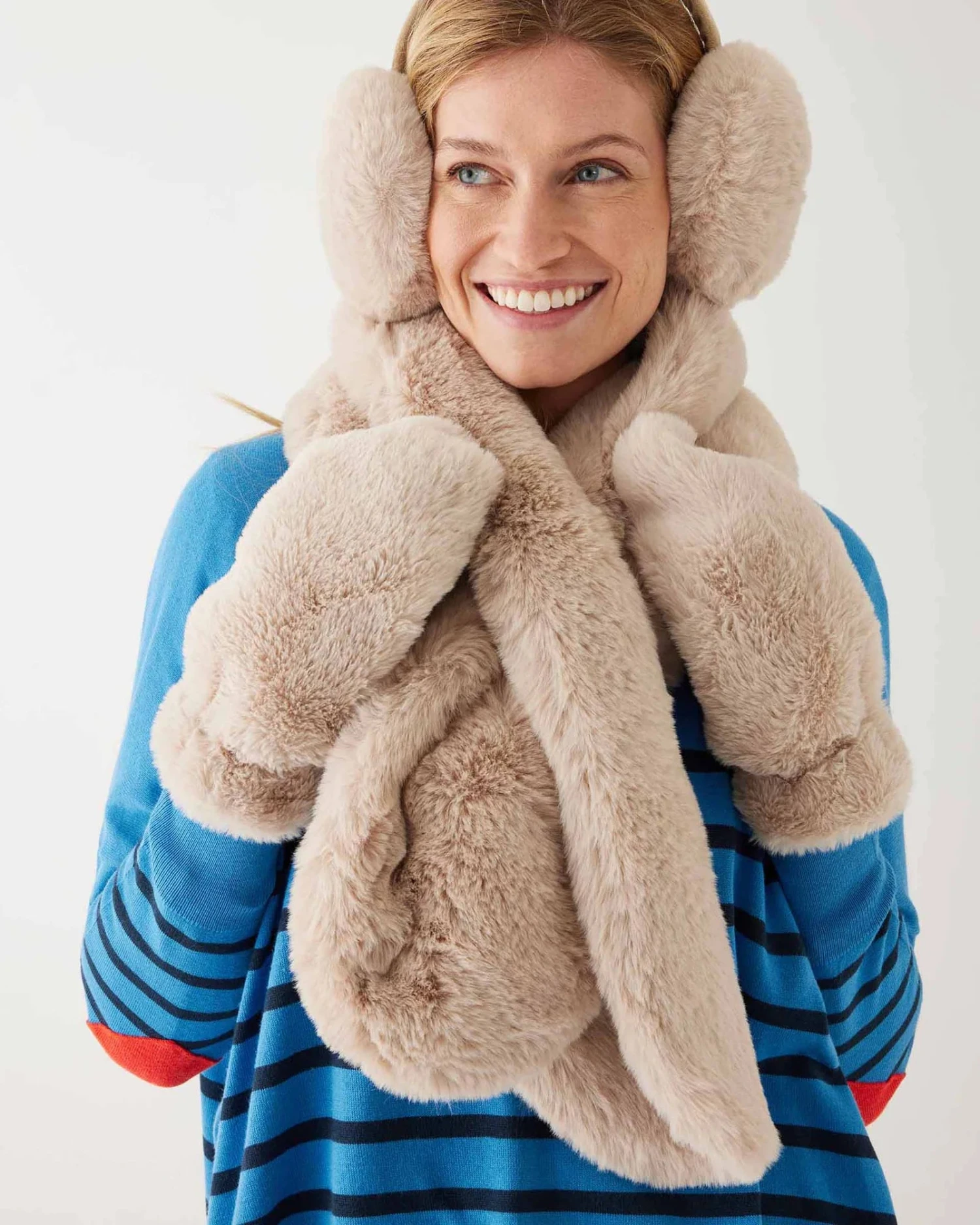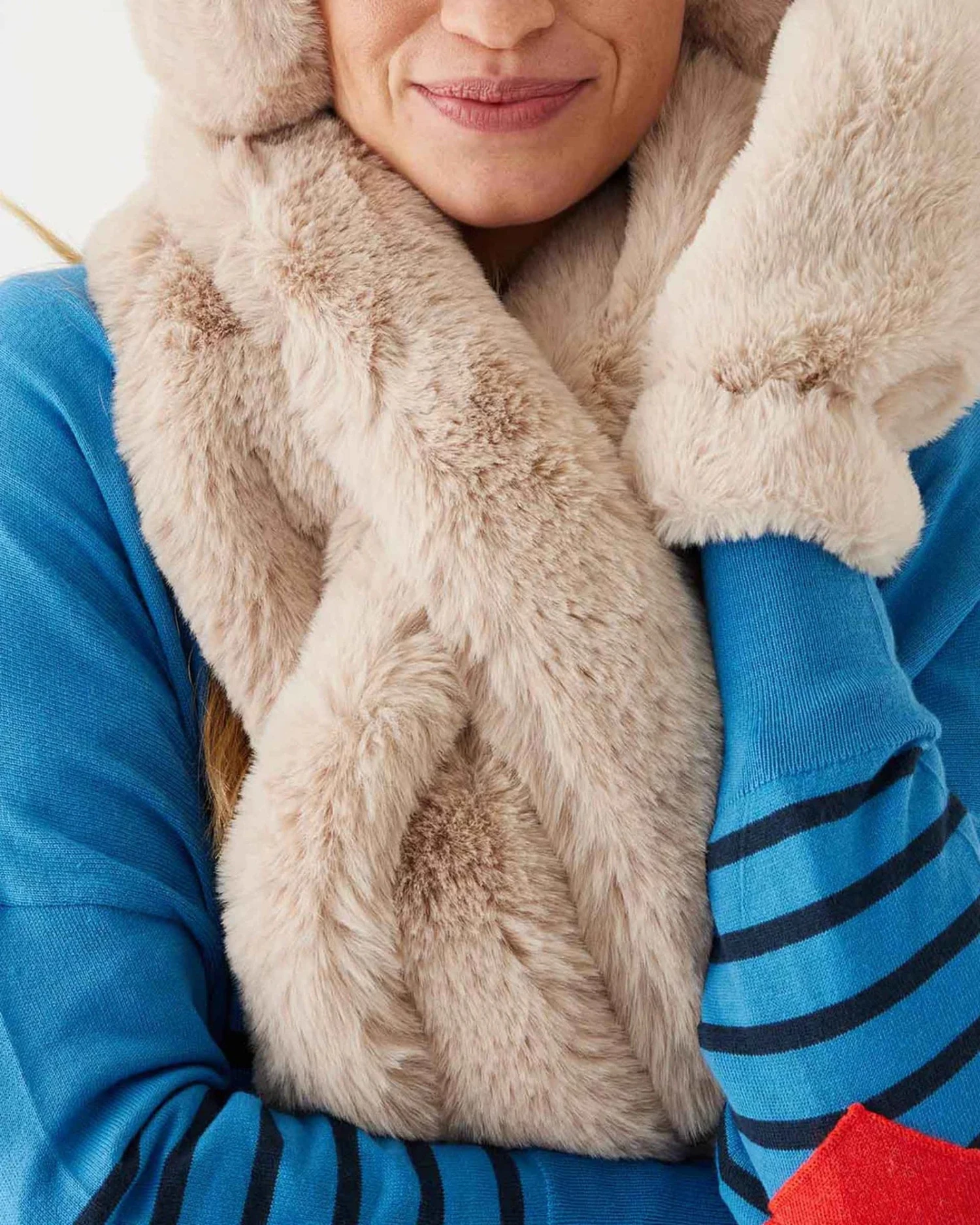Just when your scarf wonโt cooperate, we created the Cozy Cabin Faux Fur Scarf. With a slit on one end to pull the other end through, this plush neck warmer is secure on your winter look. We know just how key an effortless accessory is.