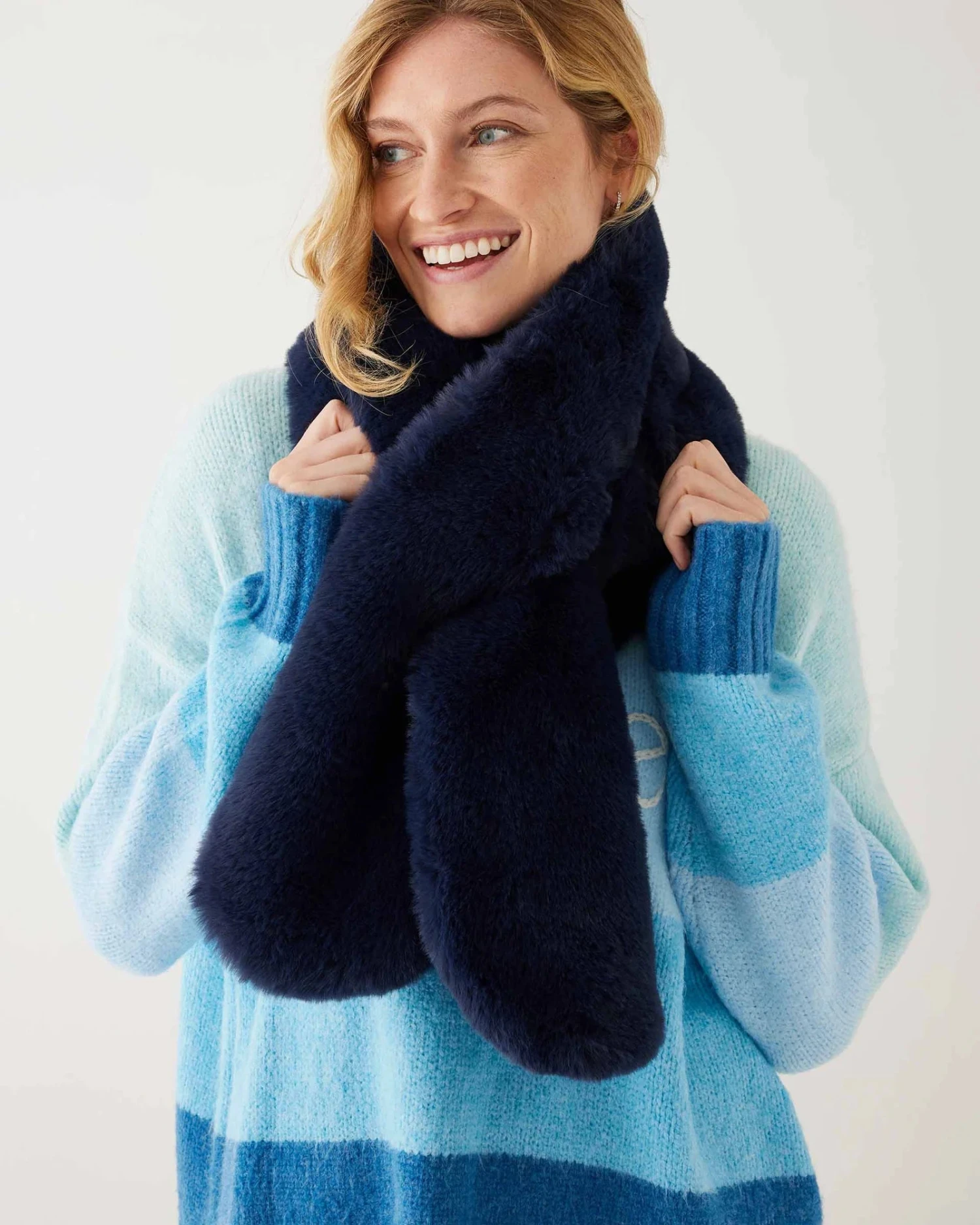Just when your scarf wonβt cooperate, we created the Cozy Cabin Faux Fur Scarf. With a slit on one end to pull the other end through, this plush neck warmer is secure on your winter look. We know just how key an effortless accessory is.