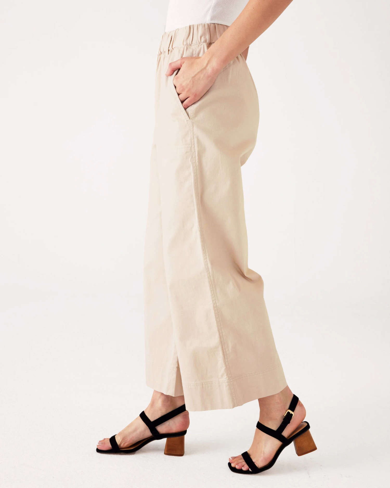 The luxurious Sammie Twill Pant is a flattering silhouette with an elastic waist and belt loops. Wide-leg checks all the boxes from stylish and timely to comfortable and versatile. MERSEA’s new wide leg pant can swing from daily adventures to fine-dining out and you’ll have pockets and breathability from one experience to the next.
