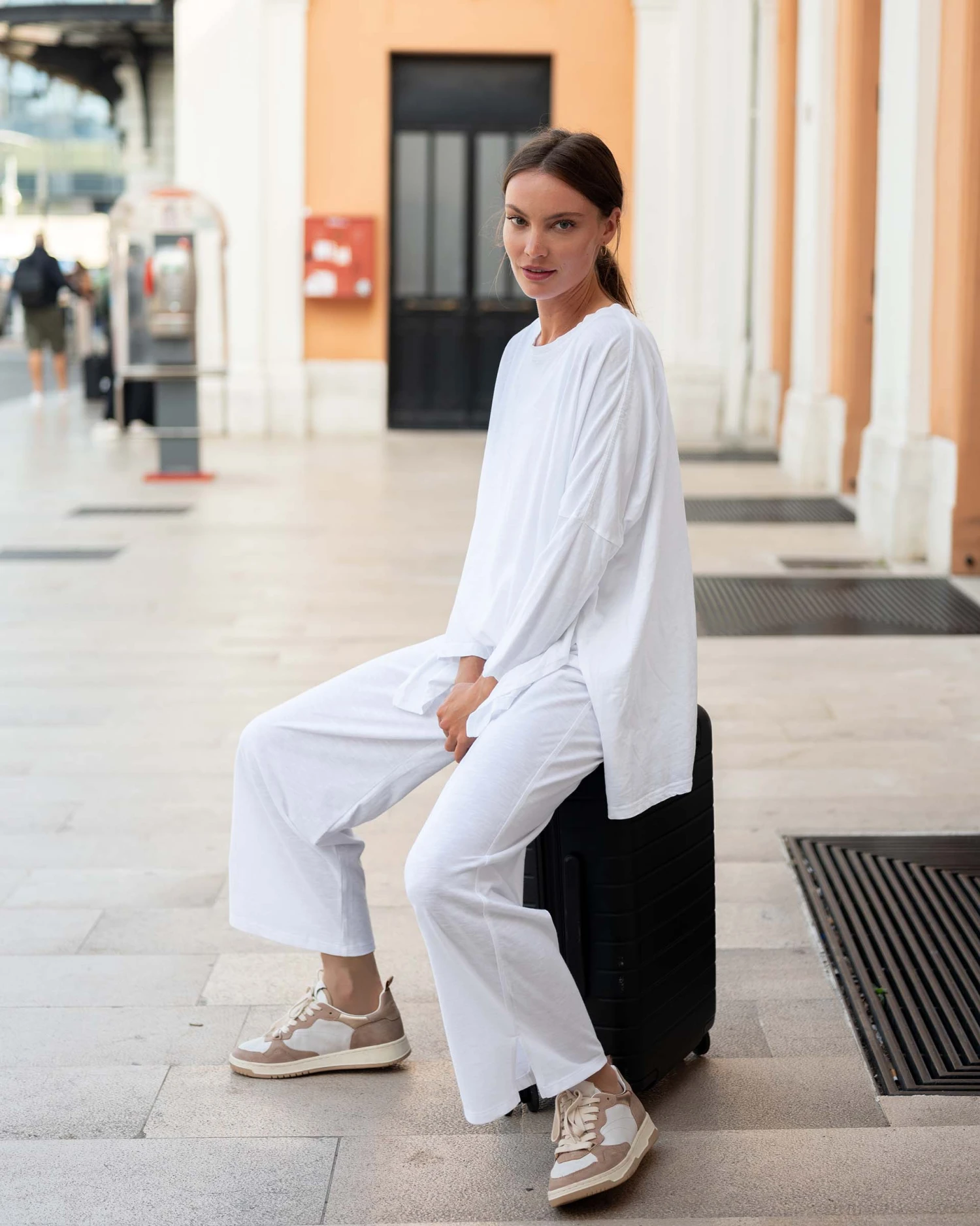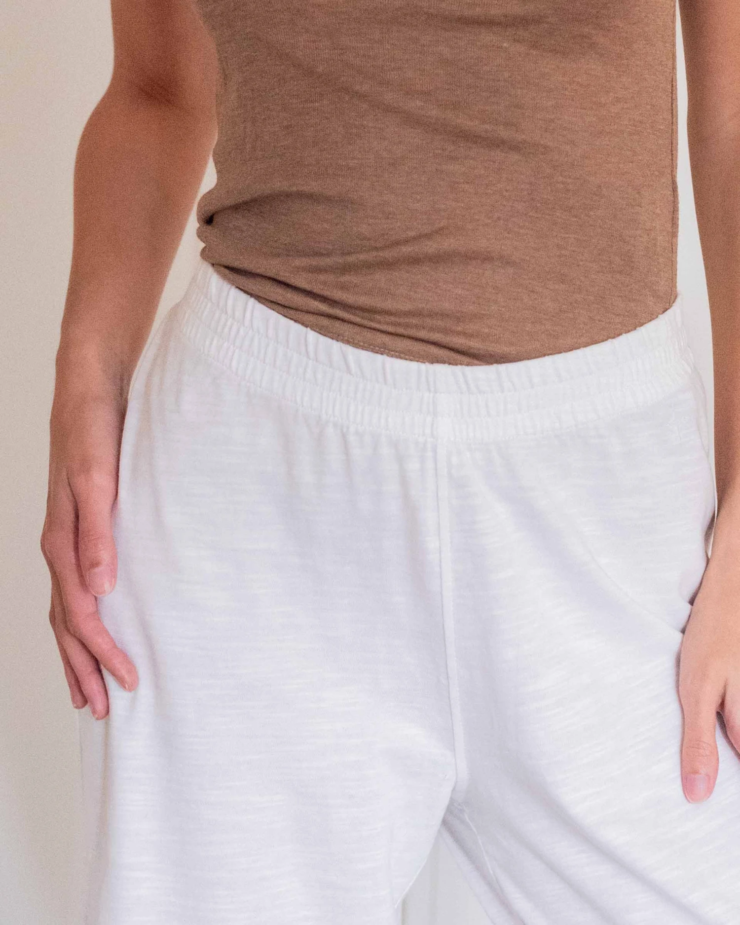 This versatile pant also pairs well with our Catalina Sweaters—or your favorite sweatshirt or tank—for mix & match functionality. A wide leg with side slits at the ankle and an easy elastic waistband mean 24 hour comfort – whether you’re lounging around at home, on the daily go or hopping on a long plane ride. Made of sumptuous 100% Turkish cotton.